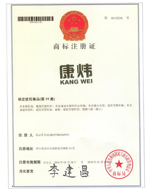 商標注冊證(zhèng)-資(zī)質榮譽-pp超靜(jìng)音(yīn)管_聚丙(bǐng)烯靜音管-成都91污靜音管廠家